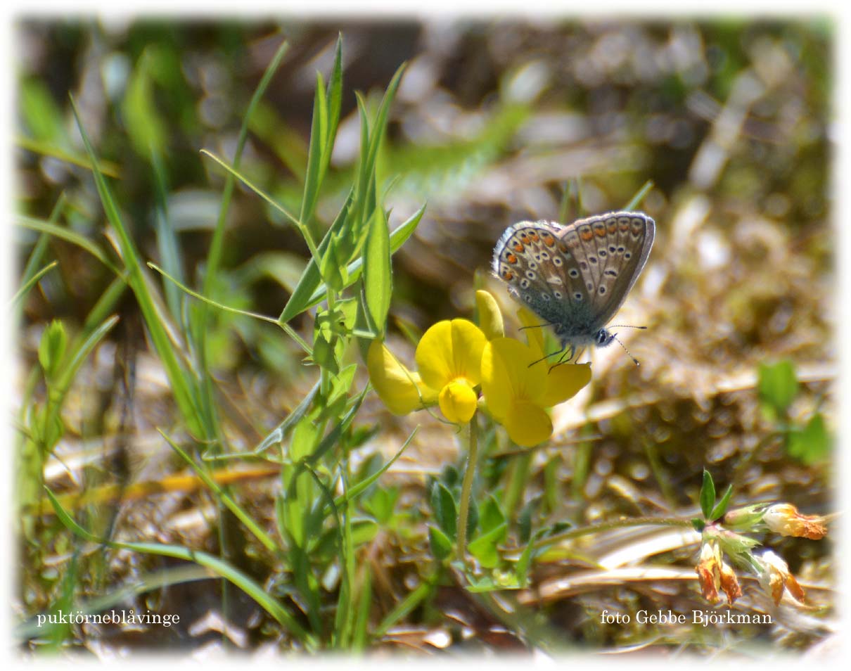 Överallt flyger blåvingar omkring. Jag fotograferar dem alla, ungefär ett tjugotal individer och försöker därvid komma åt den artbestämmande undersidan med sina prickar och mönster. Med 300mm-teleskopet på kameran kan jag ta närbilder på två meters håll och stör fjärilarna minimalt.